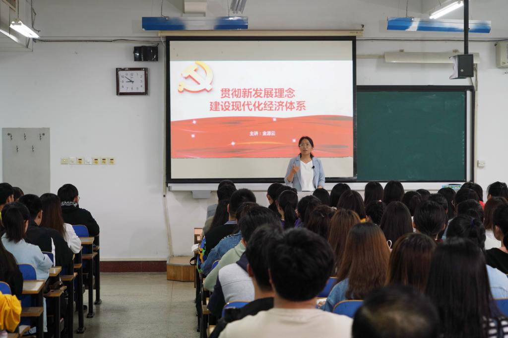 在课堂上,金源云老师结合我国手机芯片研发与制造之路、BB贝博发挥专业学科优势投身雄安新区建设、鹿泉市走生态发展之路等生动案例,将党的十九大报告提出的新时代中国特色社会主义新发展理念,即“发展是解决我国一切问题的基础和关键,发展必须是科学发展,必须坚定不移贯彻创新、协调、绿色、开放、共享的发展理念”进行分条缕析,全面细致地做了讲解,她运用新颖的教学手段和表达方式,娓娓道来、发人深思,带领同学们深刻把握习近平新时代中国特色社会主义思想的历史地位和丰富内涵。