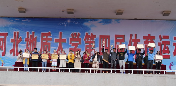 经过两天紧张有序的比赛,19日下午,运动会圆满落下帷幕。闭幕式由张小平主持。总裁判长赵海军宣布比赛成绩,学生工作处处长、运动会精神文明评比委员会主任郑炳章宣布精神文明评比结果。比赛共产生了66项冠军,法政学院、艺术设计学院等11个单位被评为精神文明先进单位。资源学院、商学院、勘查技术与工程学院获得学生男子组前三名;会计学院、商学院、管理科学与工程学院获得学生女子组前三名。在全场热烈的掌声和欢呼声中,校领导和老师们为获奖单位颁发了奖杯和奖状。