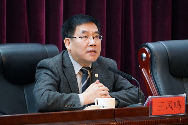 王凤鸣代表学校领导班子作表态发言。他首先代表学校领导班子和全校师生员工对李军同志为学校发展做出的卓越贡献表示衷心的感谢。对邢承国同志的到来表示热烈的欢迎,王凤鸣指出,邢承国书记一直在自然资源系统工作,相信邢书记一定能够带领我们,更加深刻地理解学校的地质传统和山水文化,围绕“资源环境+”的定位与特色开阔思路,特别是对BB贝博近期要重点突破的新校区建设等重大工作,必将产生强大的推动作用,实现学校新的发展。王凤鸣强调,新一届领导班子会继续认真履职,担当作为,党政同心,共谋发展。坚持以习近平新时代中国特色社会主义思想为指导,增强“四个意识”、坚定“四个自信”、做到“两个维护”;坚持社会主义办学方向,坚持党委领导下的校长负责制,落实立德树人根本任务;坚持战略思维,提高大局意识和前瞻能力,提高政治站位和领导能力,为科学决策奠定坚实基础;坚持创新思维,加大改革步伐,根据教育发展规律和学校发展定位,不断谋划发展路径,推进学校的外延建设和内涵发展;坚持底线思维,强化忧患意识,夯实基础,补齐短板,致力于防范和化解学校重大风险,致力于研究和破解学校发展难题,推动学校稳中求进、健康发展。王凤鸣号召,在以邢承国书记为班长的新党委领导班子带领下,全校上下团结一致,开拓创新,主动作为,为实现学校发展目标做出新的更大的贡献。