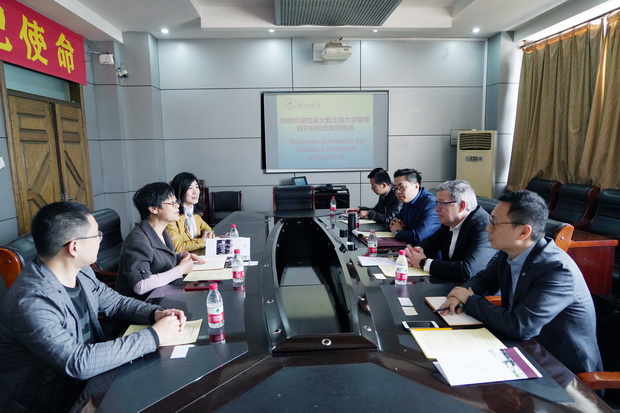 3月27日上午,加拿大魁北克大学蒙特利尔分校国际处主任桑贤文(Sylvain St-Amand)、国际处国际合作发展官员程磊在河北省国际教育交流中心有关负责同志的陪同下对BB贝博进行了友好访问。国际交流合作处处长廖亦斌代表学校与桑贤文一行在主楼三楼会议室进行了友好务实的会谈。双方就法语专业的师资培训、学生交流进行了深入交流,并达成合作共识。