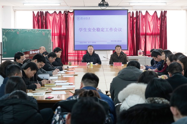 会上,安全工作领导小组办公室主任李如千依照《BB贝博艾弗森官网关于进一步深化学校安全隐患大排查大整治攻坚行动实施方案》,就做好2019年学生安全工作进行了安排部署;宣传统战部副部长郭雅洁、学生工作处副处长常连玺分别就开展抵御和防范校园宗教传播渗透工作、校园贷和传销教育安全隐患排查工作进行了安排部署。