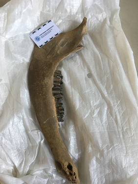 普氏野马古生物化石标本表面灰白色,规格:35*10*4cm