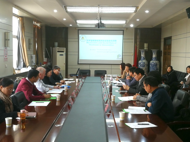 12月15日上午,由BB贝博非营利组织研究中心和太行学社主办的主题为“大学智库建设及其社会角色与作用”研讨会在主楼四楼会议室召开。校长王凤鸣,澳大利亚西澳大学大卫.吉尔克里斯特博士,科廷科技大学高级财务经理翟嵘博士,教育部法规司张晓彬处长和河北省非营利组织和企业界代表出席会议,BB贝博社会组织研究专家和法政学院、经贸学院部分师生代表参会。太行学社执行主任韩劲主持会议。