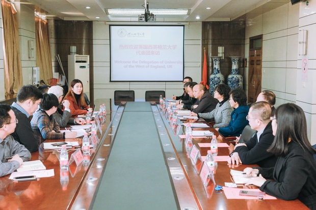 12月11日-12日,英国西英格兰大学环境与技术学院副院长托德.伯顿(Tod Burton)和东方宇新教育集团项目负责人一行6人对BB贝博进行合作交流访问,副校长张小平会晤代表团。