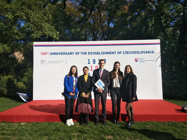 11月13日,应捷克大使馆邀请,BB贝博捷克语专业教师张茜、18级辅导员高珊珊带领捷克语专业全体同学参加了捷克大使馆举办的捷克斯洛伐克建国100周年系列活动以及中捷友好发展交流会。BB贝博两名外教玛丽亚.苏霍娃,彼得拉.斯比尔科瓦也受邀参加活动。同时参会的还有天津外国语大学和北京第二外国语大学的捷克语专业师生。