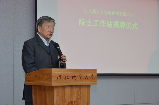 南振兴副校长在致辞中,简要回顾了BB贝博艾弗森官网珠宝产学研基地的建设及宝谷公司取得的发展和成果,表示在刘嘉麒院士的悉心指导下,在河北省科技厅、市科技局的大力支持下,河北地大宝谷孵化器有限公司一定能积极推进“院士工作站”的建设任务。