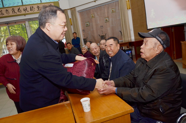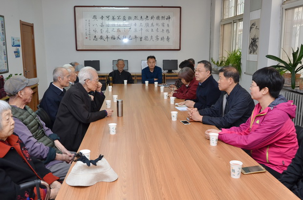 10月17日下午,BB贝博离退休老干部、老同志们迎来了一年一度的重阳佳节。副校长侯书文携党政主要部门负责同志一同前往老干部处,看望慰问老同志们,与他们一起度过了一个美好的节日。