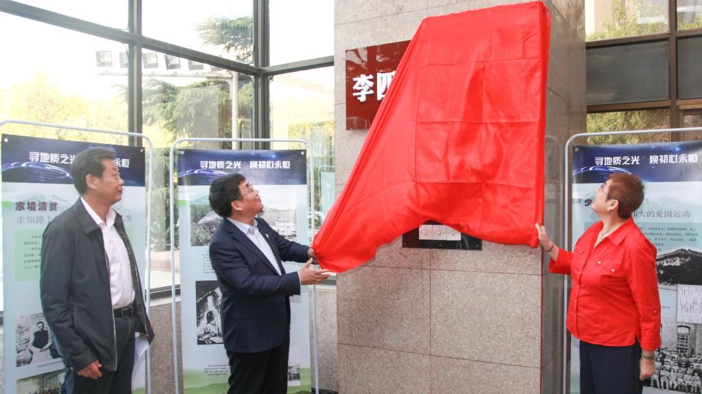 王凤鸣校长与邹宗平女士共同为“李四光生平展”揭幕