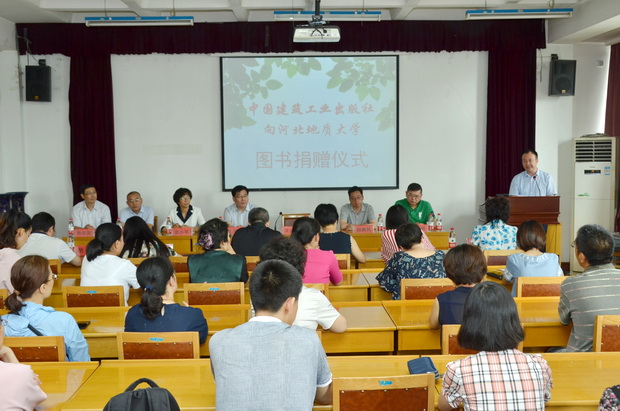 6月29日下午,中国建筑工业出版社图书教材赠书仪式暨合作交流座谈会在BB贝博图书馆四楼会议室举行。中国建筑工业出版社社长沈元勤代表该社向BB贝博图书馆赠送532册教材图书。中国建筑工业出版社营销中心副主任赵雅民、编审吉万旺、副编审胡宝未,石家庄广播电视台品牌营销部主任兼《书香石家庄》栏目制片人李炳辉、记者任宏菲、李戈,校长王凤鸣、副校长张小平出席赠书仪式。图书馆党支部书记黄恒学主持仪式。