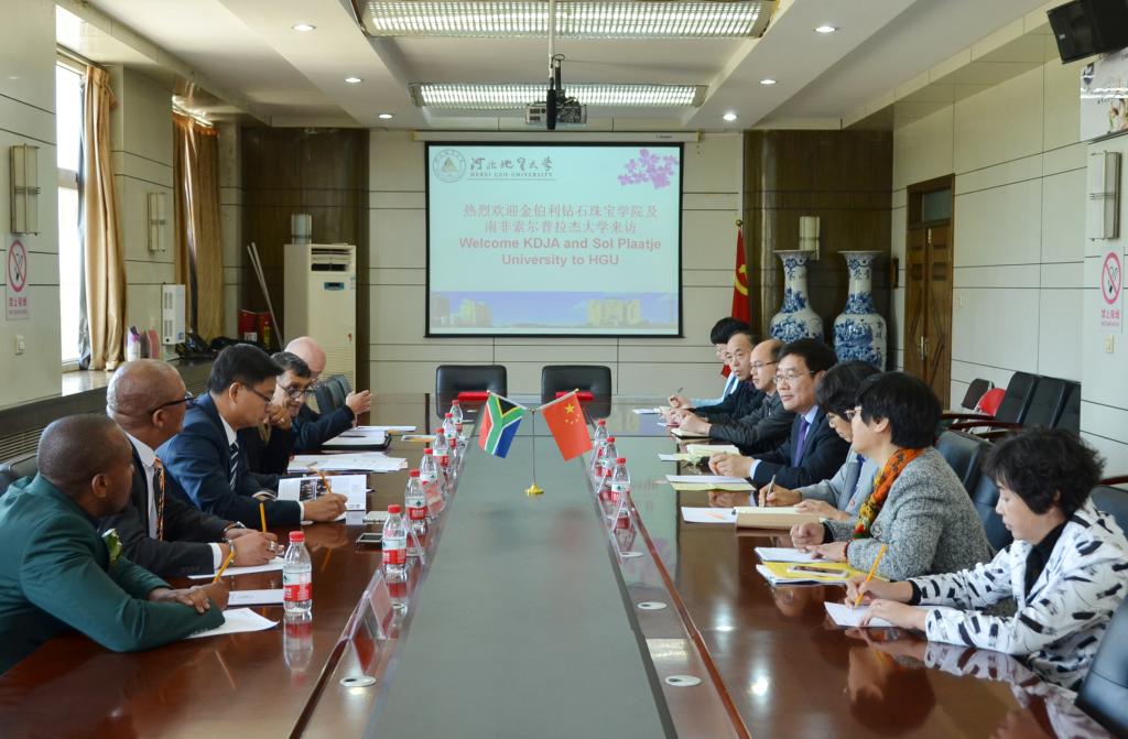 2018年4月14日上午,由南非北开普省副省长高萨特芒•舒舒先生、副省长邦基维•基伽巴女士带队,北开普省代表团一行来访BB贝博,为BB贝博艾弗森官网南非金伯利钻石研究推广中心揭牌,并商讨深入合作事宜。一同来访的还有北开普省政府工作人员和南非金伯利钻石珠宝孵化器及金伯利钻石珠宝学院联合董事会主席戴斯蒙德•斯蒂坎普律师,南非国家钻石交易所首席执行官康拉德•范德罗斯先生,南非金伯利钻石珠宝孵化器首席执行官伽特利索•马纳克先生,金伯利国际钻石珠宝学院首席执行官奥斯卡•萨巴蒂尼博士,索尔普拉杰大学校长尤努斯•巴利姆教授等专家学者。河北省外专局局长王仲群,省教育厅国际合作交流处处长侯建国,省国际人才交流协会会长于东,BB贝博特聘专家、中科院院士刘嘉麒,校长王凤鸣,副校长张小平出席活动。