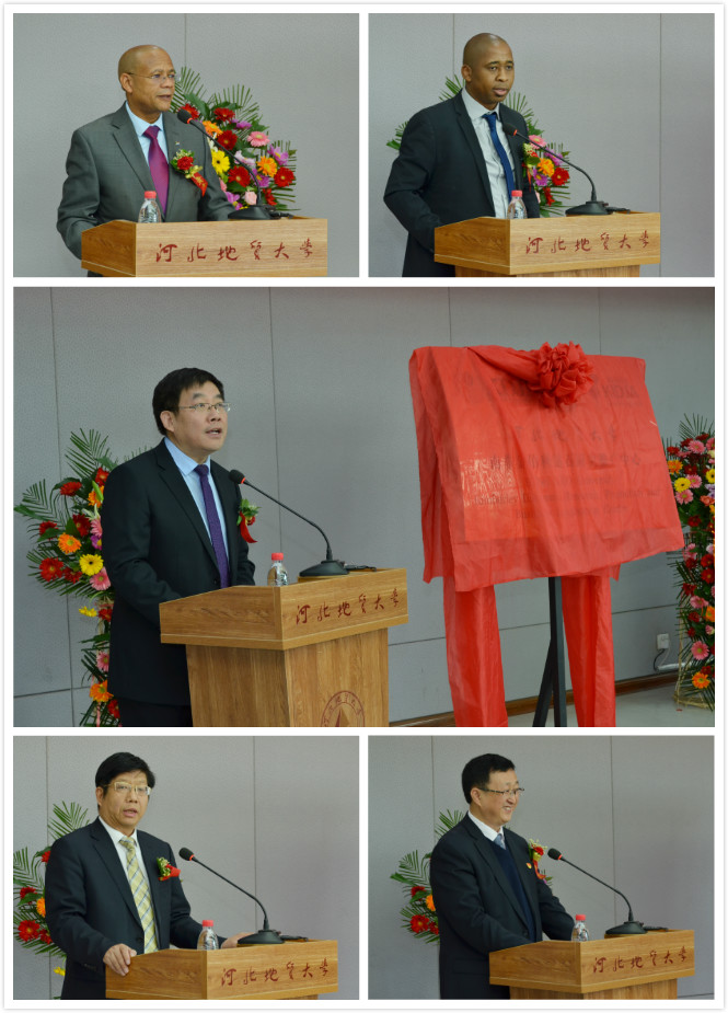 王凤鸣校长(中)、舒舒先生(左上)、斯蒂坎普先生(右上)、王仲群局长(左下)、王礼胜院长(右下)分别致辞