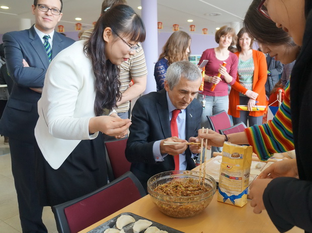 在中国驻捷克大使馆的大力支持与协调下,经BB贝博与奥斯特拉发技术大学的通力合作,并在捷克帕拉茨基大学孔子学院以及BB贝博的其他捷克友好院校的配合下,孔子课堂揭牌仪式后,BB贝博又成功举办了规模宏大、内容丰富的中国文化主题日活动。活动中,中国名胜图片展、中国民俗图片展、中捷友谊图片展、茶艺表演、剪纸、中国结、书法、二胡、民族舞蹈和中国饺子等文化展示、体验节目吸引了300多名来自社会各界人士前来参加。