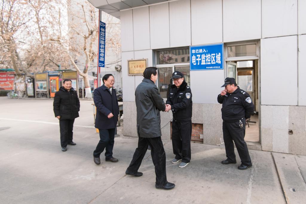 在每个校区,校领导都与坚守在工作岗位上的一线教职工亲切交流,听取了校园安保、供暖供水供电、食堂等情况汇报,详细询问了假期管理服务措施,同时嘱咐大家要确保服务质量和生产安全,并代表全校师生员工向大家表示诚挚的慰问和节日的祝福。值班教职员工衷心感谢校领导的问候与关怀,并表示一定坚守岗位、履职尽责,以实际行动保证节日期间学校的正常运转,使全校师生度过一个欢乐、祥和、平安的新春佳节。
