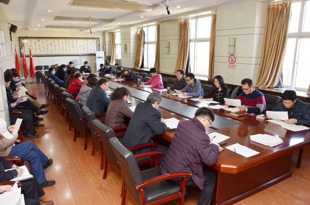 图为:思想政治工作推进会在主楼四楼会议室召开