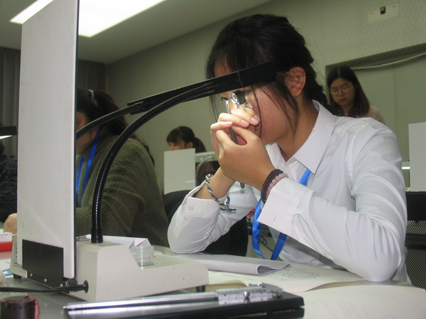 在比赛过程中,每位参赛选手需在100分钟内,对10颗钻石标本的重量、颜色、净度和切工进行分级,即4C分级,并以规范的方式填写4C分级报告。期间,BB贝博组织所有参赛院校的教师代表在多功能报告厅进行了座谈。与会代表就如何培养珠宝行业技能型、应用型人才展开了热烈的讨论,并举行了GAC考试制定教材《珠宝玉石学》的河北站签售仪式。参赛院校师生代表还参观了BB贝博地球科学博物馆和珠宝中心。