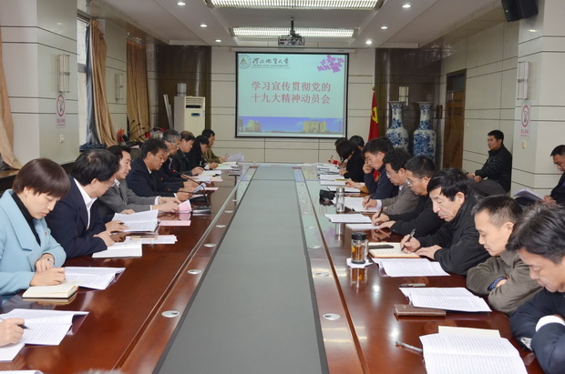 11月6日,学校在主楼四楼会议室召开全委扩大会,研究部署学习宣传贯彻党的十九大精神及省委九届五次全会精神。会议印发了《中共BB贝博艾弗森官网委员会学习宣传贯彻党的十九大精神实施方案(讨论稿)》。校党委书记李军带领全体参会人员重温入党誓词,并发表重要讲话。党委副书记刘耀辉主持会议。