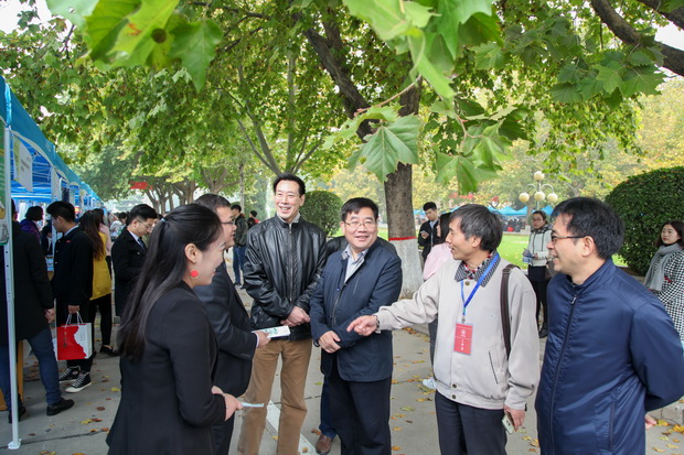 图为:省教育厅、学校领导和用人单位亲切交谈