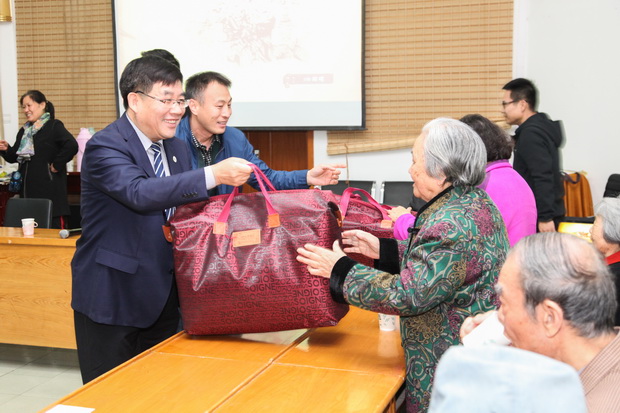 会后,校领导们特别为今年年满百岁、90岁、80岁、70岁的老同志们颁发生日礼物,祝福他们生日快乐!