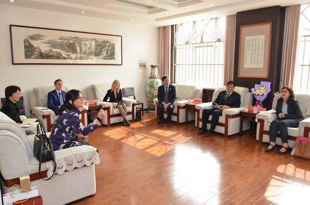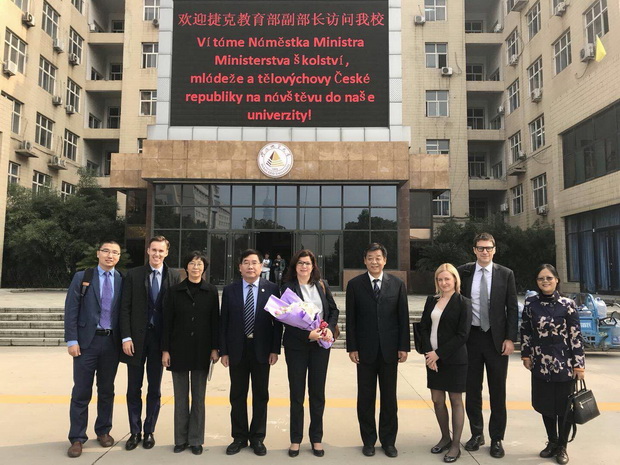 10月24日,捷克教育部副部长丹娜•普鲁迪科娃女士来BB贝博访问,捷克教育部国际教育合作中心主任丹娜•彼卓娃、捷克驻华大使馆文化参赞欧阳旭、捷克驻华大使馆翻译李霁昭、捷克奥斯特拉发技术大学国际处处长丹尼尔•卡斯滕随同访问。校党委书记李军、校长王凤鸣、副校长张小平在主楼二楼会议室会晤了丹娜女士一行,双方亲切交谈。