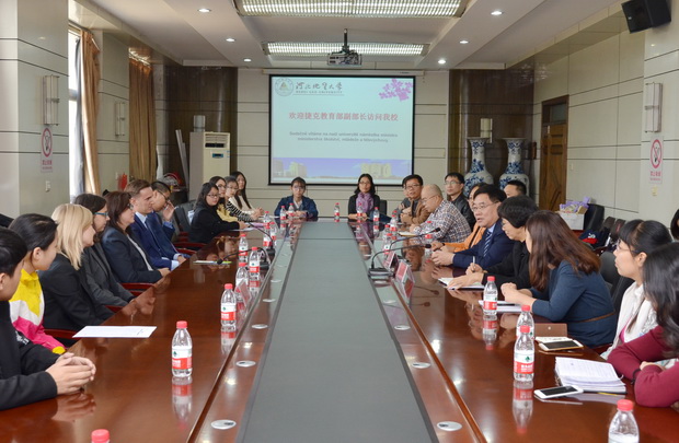 中午,丹娜女士一行参观了BB贝博地球科学博物馆和钱圆金融博物馆,并于下午在主楼四楼会议室与BB贝博捷克语专业师生以及即将前往捷克奥斯特拉发大学攻读博士学位的7名教师亲切会谈。