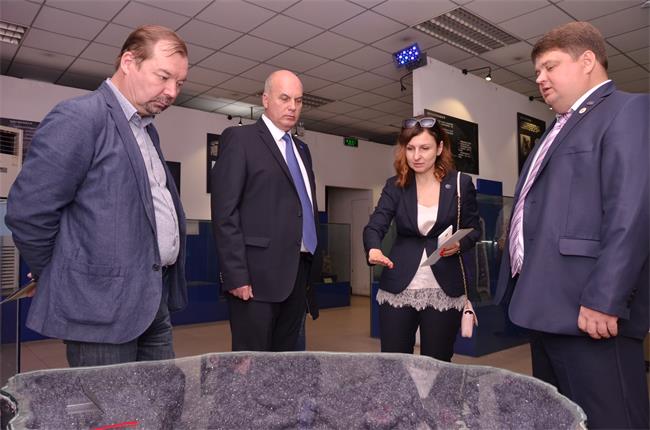 俄罗斯国立地质勘探大学代表团一行参观了地球科学博物馆、钱圆金融博物馆和宝石与材料工艺学院产学研基地。