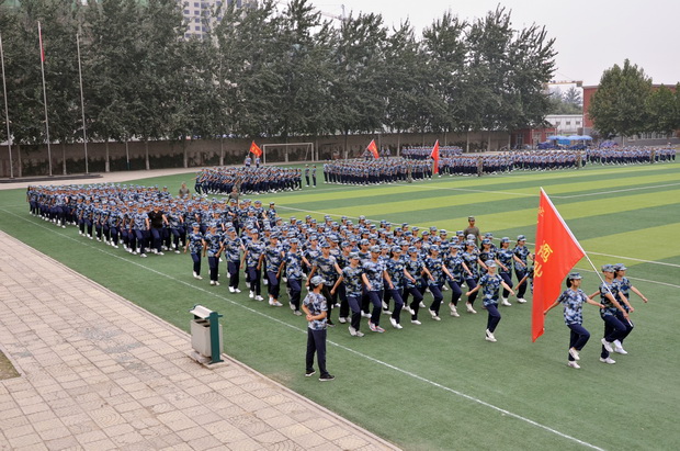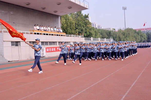 在雄壮的《国歌》声中,五星红旗冉冉升起。汇演正式开始,4000余名新生,10余个军训方队,依次经过主席台。一张张精神饱满的脸庞,一声声掷地有声的口号,响彻校园上空,队列动作表演整齐划一、士气昂扬,军体拳表演刚健有力、朝气蓬勃,展示了新生良好的形象和精神风貌,精彩的表演赢得在场领导和师生的阵阵掌声。