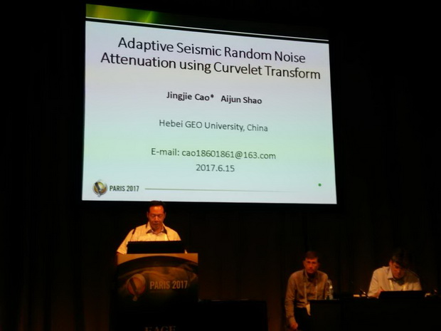 曹静杰在大会上作了题为“基于曲波变换的自适应地震数据去噪方法(Adaptive Seismic Random Noise Attenuation using Curvelet Transform)”的口头报告,引起了在场参会代表的广泛关注,并与国内外专家学者进行了广泛交流,开阔了学术视野,扩大了BB贝博在国际勘探地球物理专业领域的影响力。会议期间,邵爱军向各国青年学者宣传BB贝博的办学特色和科研成果,探讨人才引进事宜,寻找和BB贝博开展教学科研合作交流的途径和契机,为BB贝博国际合作交流发挥了积极作用。