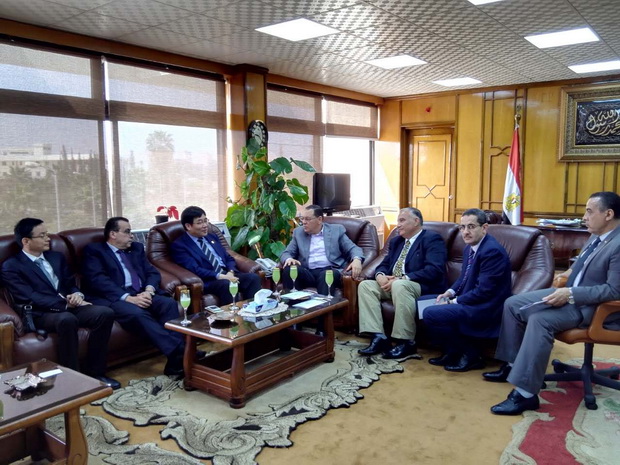 埃及苏伊士运河大学校长古霍拉(左4)等会见BB贝博代表团