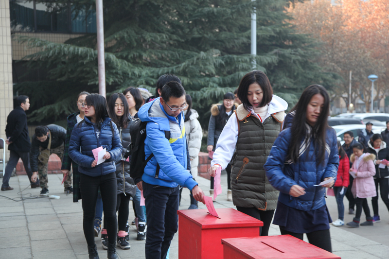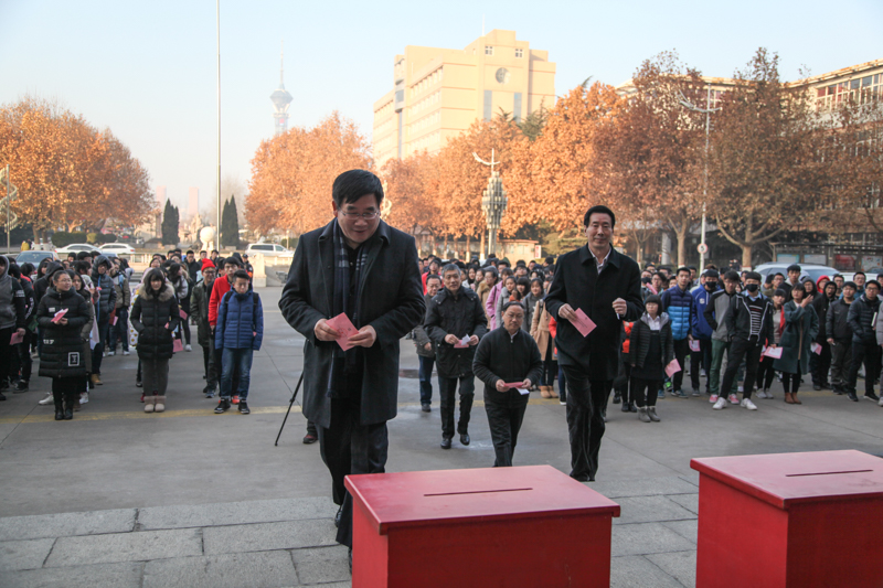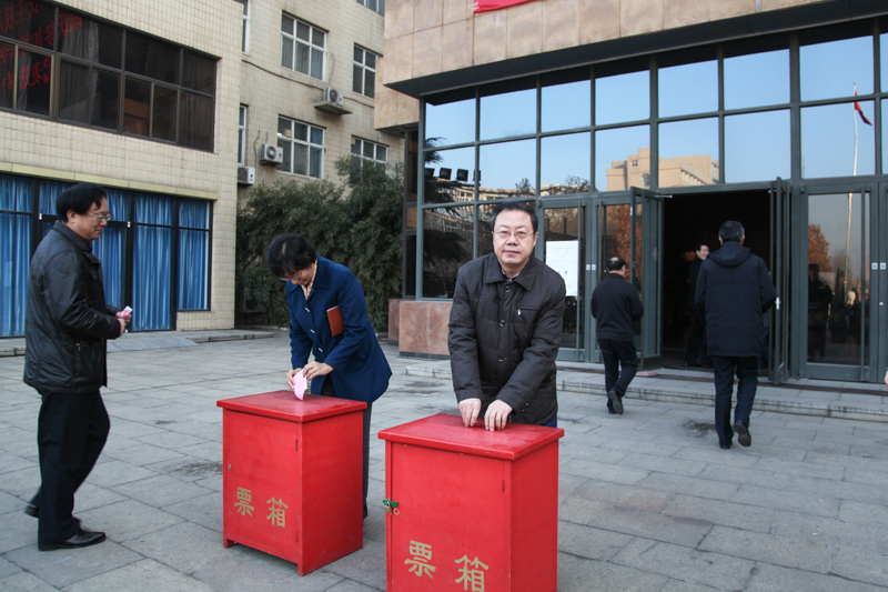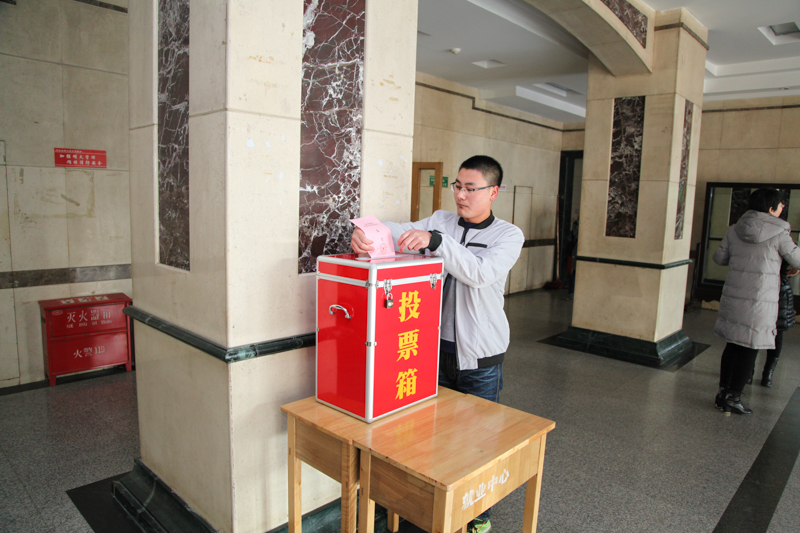 投票于9:00开始,18:00结束,全校共设立四个投票站,分别是主校区(主楼广场、教一楼大厅、综合楼),北校区,育才校区和家属院老干部活动中心。校领导李军、王凤鸣、刘耀辉、南振兴、毛磊、侯书文、张小平、蔡建章在主楼前广场参加了投票。