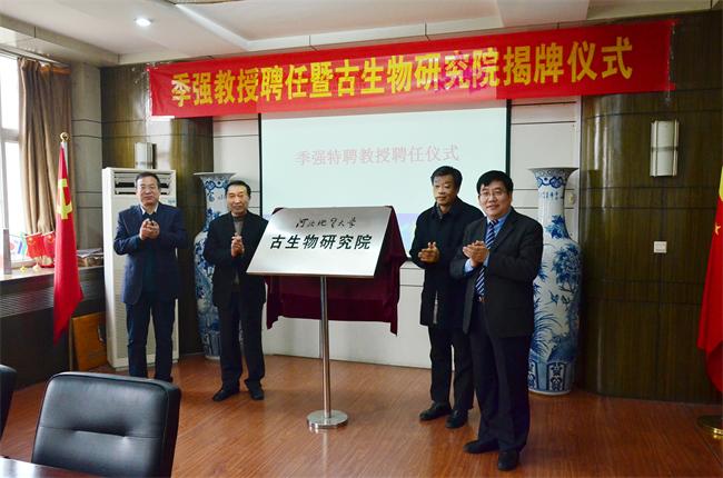 2016年12月19日,古生物学家季强教授聘任仪式暨BB贝博艾弗森官网古生物研究院揭牌仪式在主楼四楼会议室举行。古生物学家季强教授,加拿大国家自然博物馆古生物部主任吴肖春教授,河北省人力资源和社会保障厅专技处处长张永平出席仪式,校党委书记李军,校长王凤鸣,副校长毛磊、张小平,BB贝博地层古生物专家庞其清教授、牛树银教授以及相关二级学院院长、职能部门负责人见证了揭牌仪式。毛磊主持仪式。