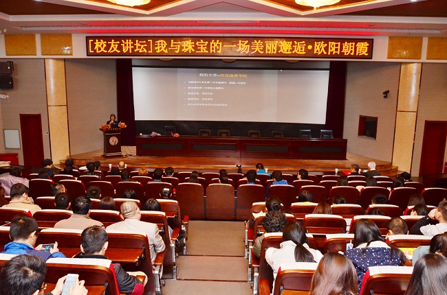 欧阳女士首先深情回忆了自己在母校学习和生活的场景,对曾为自己指引方向和提供帮助的老师和校友们表示感谢,讲述了自己第一份与珠宝结缘的工作、勤奋而努力的北漂生活、不畏艰辛的考研之路和迎接挑战走入艺术品拍卖新领域等人生经历,分享了自己一路走来的人生感悟。她的励志故事和人生感悟深深激励着在场师生。