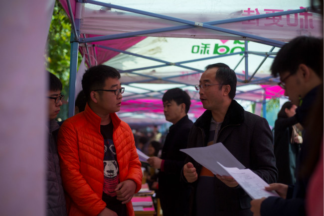 招聘会从早上8:30开始,一直持续到下午3点,许多单位还在和学生洽谈。下午,教一楼安排了35家单位进行宣讲、测试、笔试和面试。来自北京、天津、河北、江苏、江西、深圳、广东、上海、山西等10个省、自治区、直辖市的357家单位参加了招聘会,提供就业岗位11000余个,基本涵盖了BB贝博资源勘查工程、勘查技术与工程、水文与水资源工程、行政管理、会计学、人力资源管理、旅游管理、计算机科学与技术、市场营销等44个本科专业,18个专科专业。约8000余名学生到场,投递简历5610份。