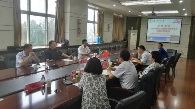 为进一步推动BB贝博的引智工作,加快国际高端人才的引进,7月20日,BB贝博邀请南非皇家科学院院士、南非地质学会资深会员简斯.巴赫尼.恩斯特.杰克森博士来校实地考察和对接洽谈。对接洽谈会在主楼四楼会议室召开,副校长张小平致欢迎词,国际教育交流中心副主任王建涛主持对接会。