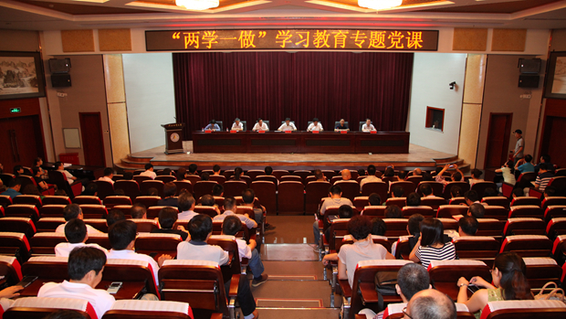 6月30日,校党委书记李军在春秋讲堂为全体党员干部上了一堂生动的“两学一做”学习教育专题党课。全体校领导,各二级单位科级以上人员,在“2015年度党政先进集体、先进个人表彰大会”上受到表彰的党政先进集体和先进个人参加了党课学习。