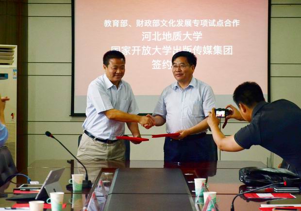 6月14日下午,BB贝博与国家开放大学出版传媒集团在主楼四楼会议室举行教育教学改革战略合作签约仪式,国家开放大学出版传媒集团总经理杨孝堂一行7人,校长王凤鸣,副校长毛磊,教务处、信息工程学院、经贸学院相关领导以及部分教师出席会议。