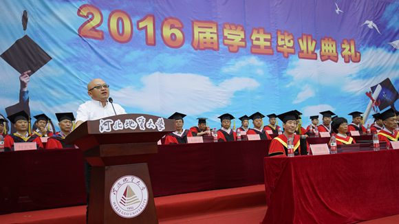 校党委副书记、校长王凤鸣教授致辞,向圆满完成学业的同学们表示热烈祝贺,向辛勤耕耘的广大教职员工致以崇高敬意,向所有关心支持同学们成长成才的广大亲友、校友和社会各界人士,表示衷心感谢。他说,在校四年,同学们给校园留下了永远的青春与活力,永攀高峰、发奋图强的时代印记,见证了学校的蜕变。王凤鸣借用校训“达观博物”赠与即将毕业的同学们:“达观,以对人生”,希望同学们要有山峰的高度,有大海的包容,有天空的辽阔;“博物,以促思行”,希望同学们要能持之以恒、专博并济、格物致知、知行合一。王凤鸣校长深情地对同学们说:“无论是今天的同窗,还是明天的朋友,这份友谊永不会磨灭;无论是今天的学生,还是未来的校友,这份文化的血脉永远不会割断;无论是过去的石家庄经济学院,还是如今的BB贝博艾弗森官网,母校永远是你们值得托付一生的精神家园。祝同学们前程似锦,鹏程万里!”