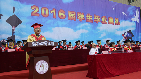 2016年6月14日,BB贝博2016届学生毕业典礼暨学位授予仪式在主楼广场隆重举行。校领导、校学位委员会委员、各学院教师代表、校友代表出席典礼。典礼由党委副书记刘耀辉主持。