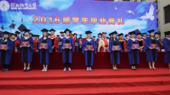 接着,学位授予仪式隆重举行,领导和老师们首先为即将奔赴祖国西部建功立业的毕业生代表授学位。之后,2016届214名研究生同学、3368名本科生同学依次上台,各位导师为同学们拨苏正冠,颁发学位证书,合影留念。