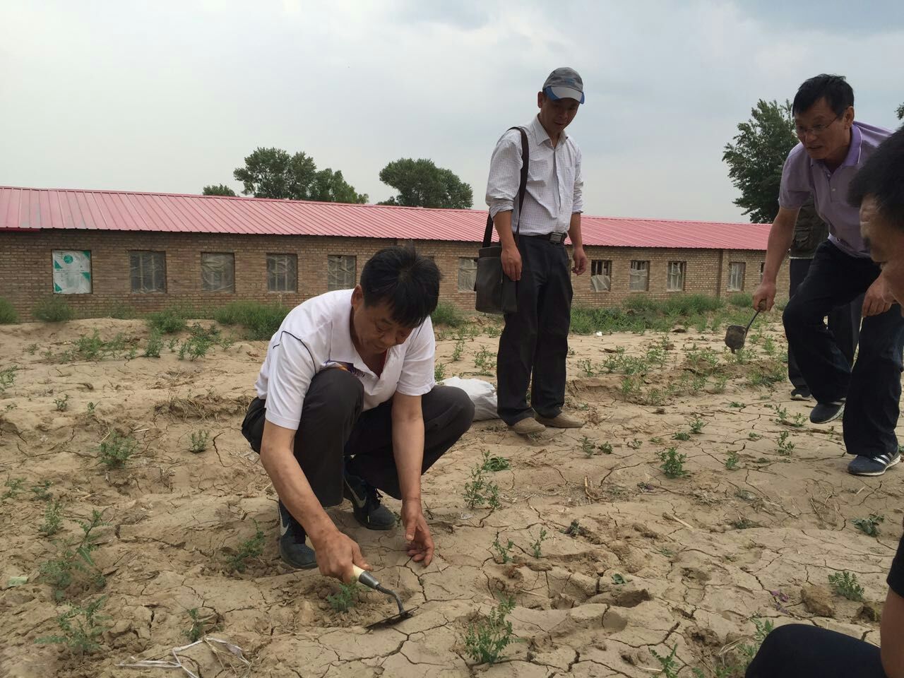 李军书记在BB贝博帮扶的黄芪种植基地示范松土保墒