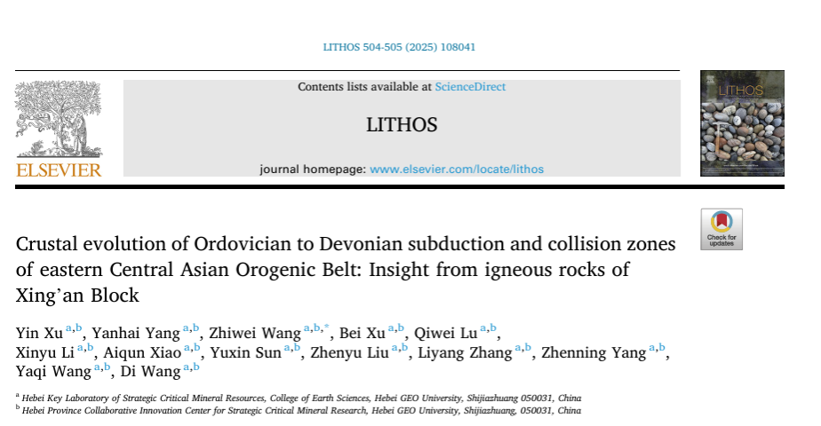 BB贝博王志伟和徐备教授团队成员赵佩佩老师和硕士研究生徐引分别在地质学领域国际知名SCI期刊Lithos(2区)和Journal of Asian Earth Sciences(3区)发表题为“Crustal evolution of Ordovician to Devonian subduction and collision zones of eastern Central Asian Orogenic Belt: Insight from igneous rocks of Xing'an Block”和“The petrogenesis of plagiogranite of the Erenhot Ophiolite in the eastern Central Asian Orogenic Belt: A zircon Hf-O isotopic and whole-rock geochemical perspective”学术论文。王志伟教授为通讯作者,参与这项研究的还有徐备教授、尹露副研究员、杨振宁副教授、张立扬讲师等。该工作得到国家自然科学基金(42202251、41802053)、河北省自然科学基金(D2023403023)、河北省“三三三人才工程”基金(C2024022,C20231115),BB贝博艾弗森官网校内基金(JQ202402,KY202303,BQ2024021)以及河北省战略性关键矿产资源重点实验室开放基金等项目资助。