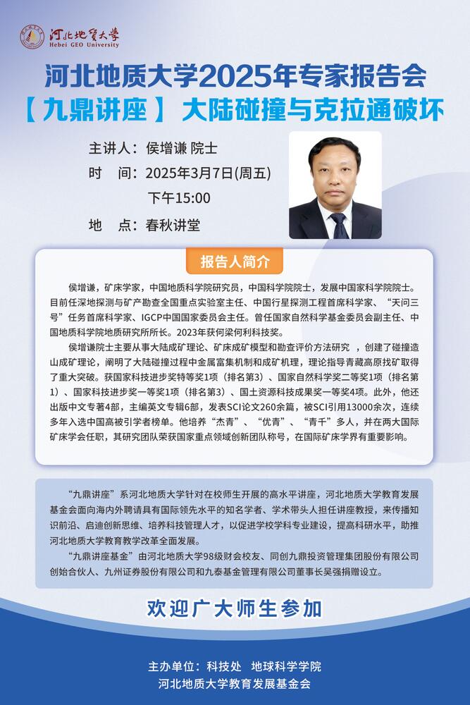 【专家河北行信息预告】“九鼎讲座”系列学术报告:大陆碰撞与克拉通破坏