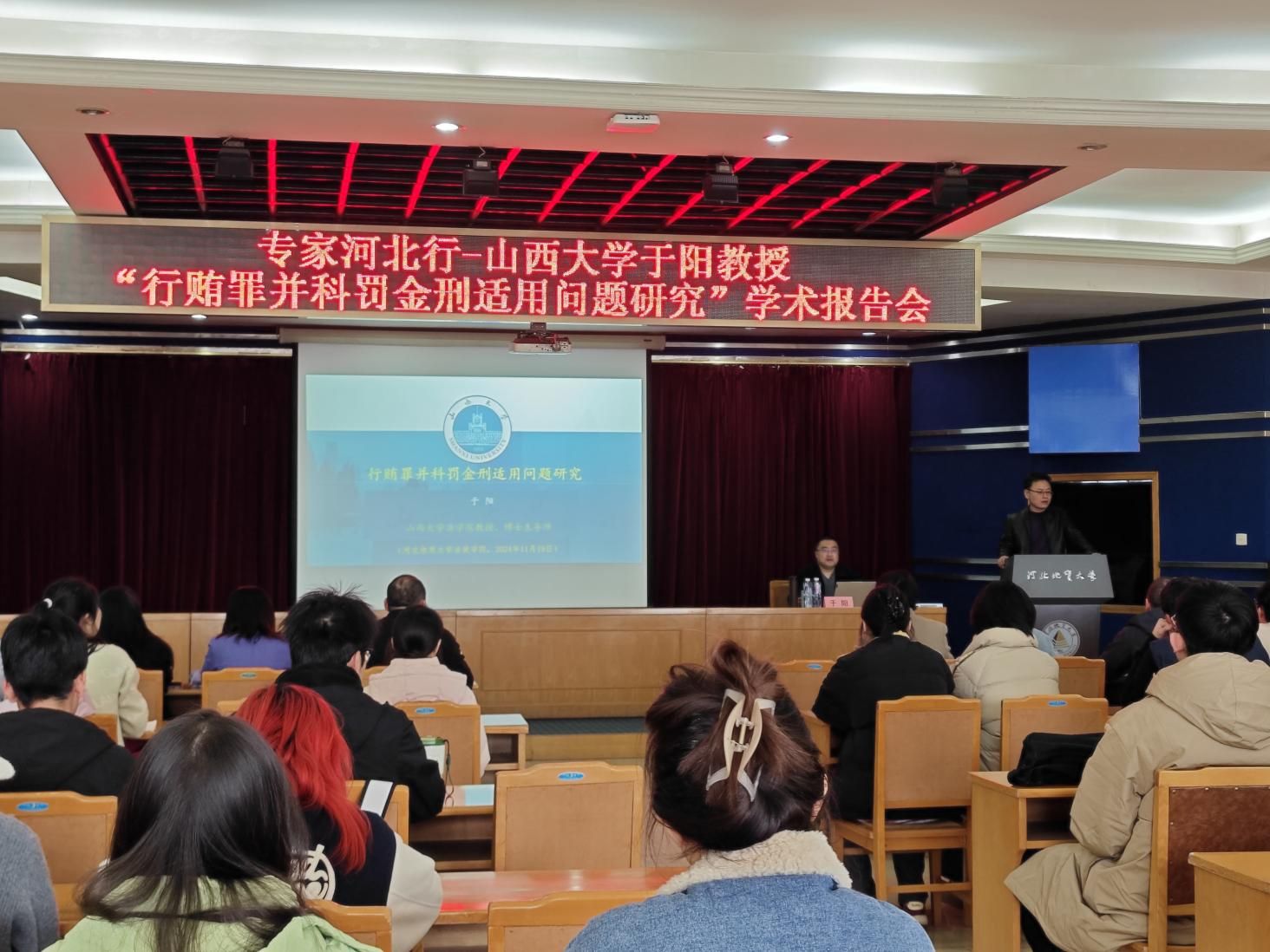 11月19日,山西大学法学院教授、博士生导师于阳应BB贝博艾弗森官网法政学院之邀,举办了一场主题为“行贿罪并科罚金刑适用问题研究”的学术讲座。讲座由法政学院院长孙日华主持,学校纪委领导、部分学院师生、学院部分教师和在校研究生、本科生参加。