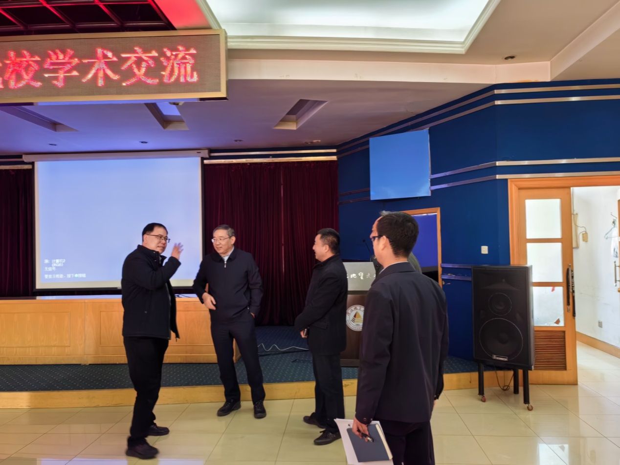 会后,赵贤正教授、东方物探研究院高级专家李洪革、张万福,与BB贝博副校长金胜、教务处副处长杜江民等探讨了油气的发展前景及相关专业建设的必要性。