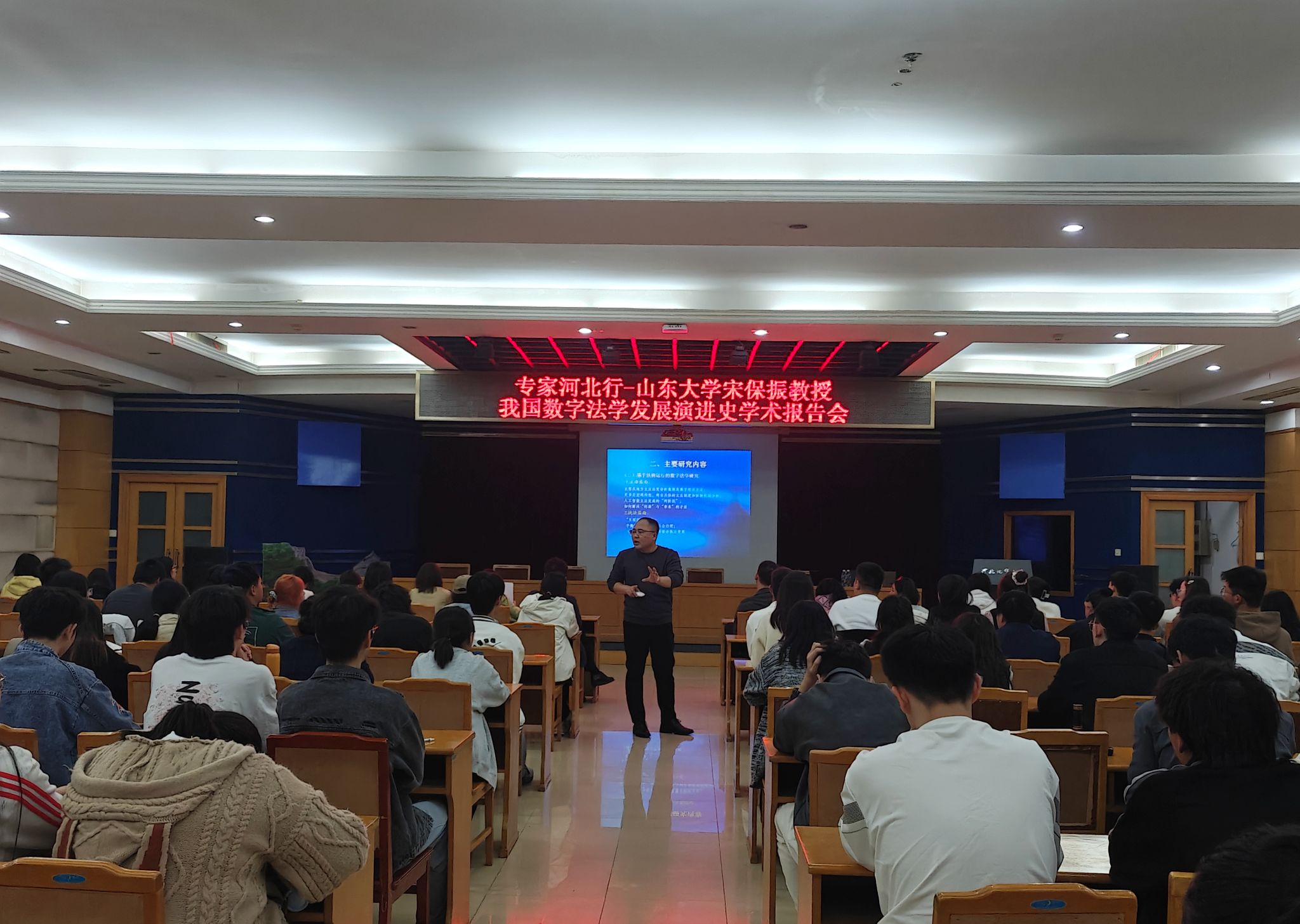 11月2日,山东大学宋保振教授受法政学院之邀莅临BB贝博,在教一九楼学术报告厅为BB贝博师生作主题为“中国数字法学研究发展史”的精彩学术讲座。讲座由法政学院院长孙日华主持,学院部分教师和在校研究生、本科生参加。