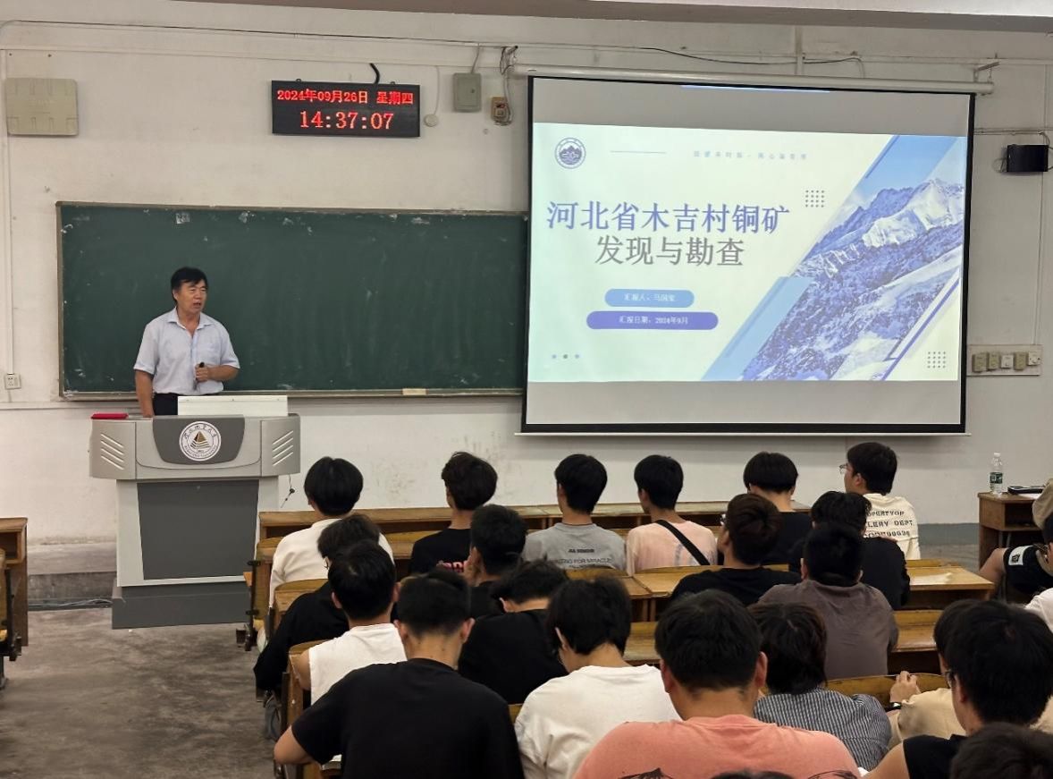 马国玺教授系统介绍了木吉村铜矿的地质背景、矿床地质、矿床成因及成矿模式、矿床的发现与勘查,同时,他结合自身的找矿经验,向同学们讲解了理论如何指导实践发现大矿,找矿实践又如何突破理论的局限引导新的找矿发现的创新思路。报告会后资源勘查工程专业的负责人张聚全教授、刘新星副教授,以及资源勘查工程专业部分同学与马国玺教授进行了深入地交流和探讨。