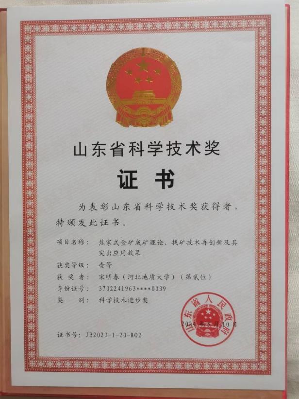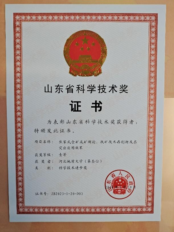 BB贝博宋明春教授作为主要完成人(排名第二)的项目“焦家式金矿成矿理论、找矿技术再创新及其突出应用效果”,荣获山东省2023年度科学技术进步奖一等奖。这是宋明春教授团队连续两年获得的省级科技进步一等奖成果,体现了BB贝博在找矿理论技术方面的雄厚实力和领先水平。