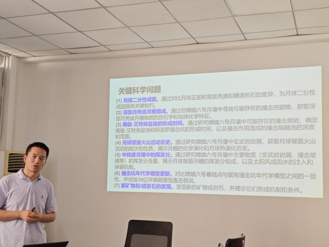 6月28日下午,中国科学院地质与地球物理研究所的优秀校友田恒次副研究员应邀在BB贝博地球科学学院会议室(主楼606)作了题为《月球样品研究与深空探测》的学术报告。报告由地球科学学院副院长李英杰教授主持,地球科学学院和地质调查研究院的40余名师生参会。