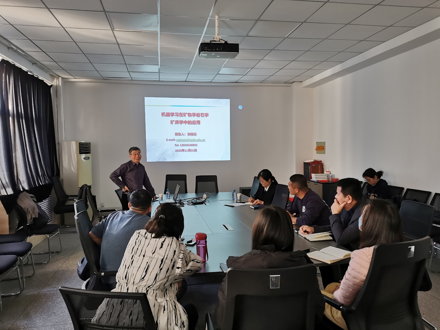 2023年11月22日,中国地质大学(北京)张招崇教授应邀为BB贝博师生作了题为“机器学习在矿物学岩石学矿床学中的应用”的报告。本次报告由地球科学学院副院长李英杰教授主持,约40余名师生参加了报告会。