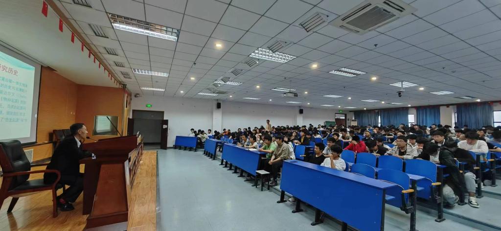 为迎接学校70周年校庆,11月2日下午,地球科学学院古生物研究中心首席科学家季强教授在北校区图书馆四楼报告厅为地球科学学院2023级全体新生做了一场别样的“新生导论”学术讲座,讲座围绕“鸟类的起源”、“鸟类的演化模式”、“古人类的进化”等问题展开,图文并茂的给同学们讲述了其早期与近期的研究成果和学科相关方向的前沿发展,勉励同学们好好学习。“我是很尊重在场的各位同学的。”季强教授说,“很多院士在我们学校度过了本科阶段的学习,说不定你们中今后有人会成为伟大的科学家,成为院士”季强教授风趣的给予在场同学美好的期望,鼓励大家扎实学研,早日成才。