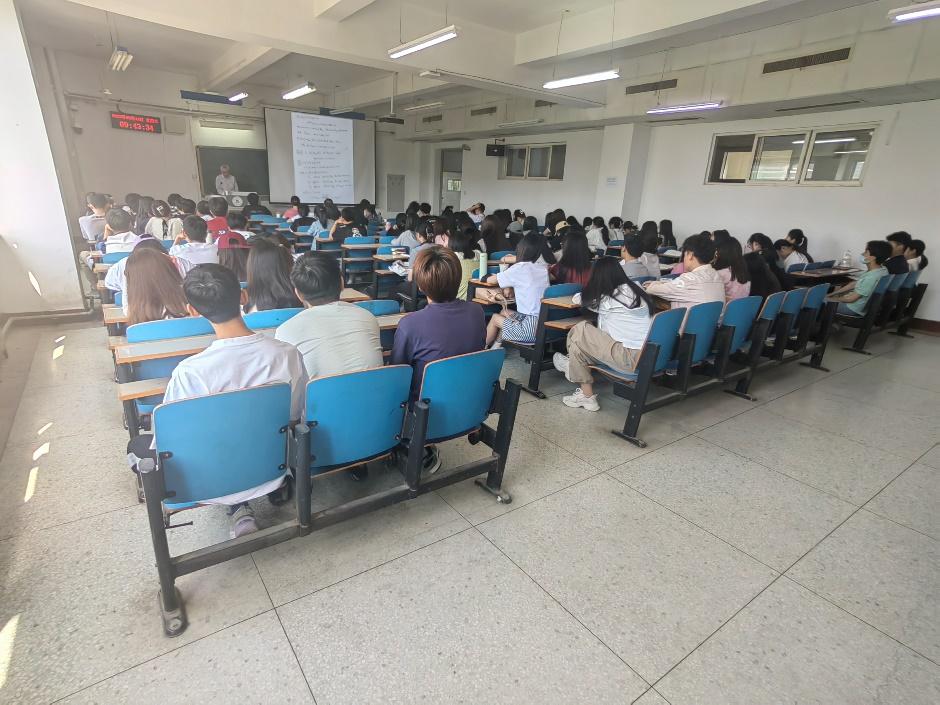 方新贵教授结合自身的科研和教学工作经历,详细地介绍了高等代数中的线性方程组与矩阵的紧密联系:给出数域F上的一个m行n列的矩阵A,以A为系数矩阵得到一个齐次线性方程组AX=0, 其解空间维数为n-rank(A)。由此可知一些矩阵秩的不等式证明可以转化为讨论若干个齐次线性方程组解空间之间的关系。基于这个想法给出了若干矩阵秩不等式的一个证明。方教授的讲解深入浅出、耐心细致,拓宽了学生们的知识视野,让学生们对高等代数有更深的感悟和兴趣。